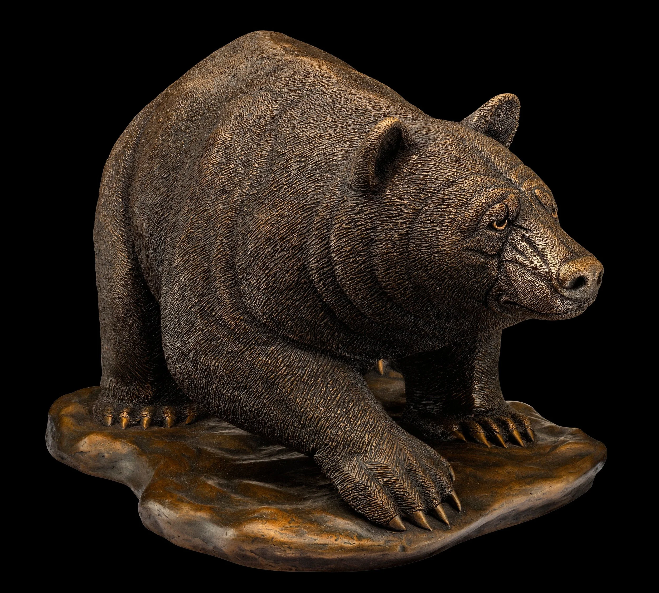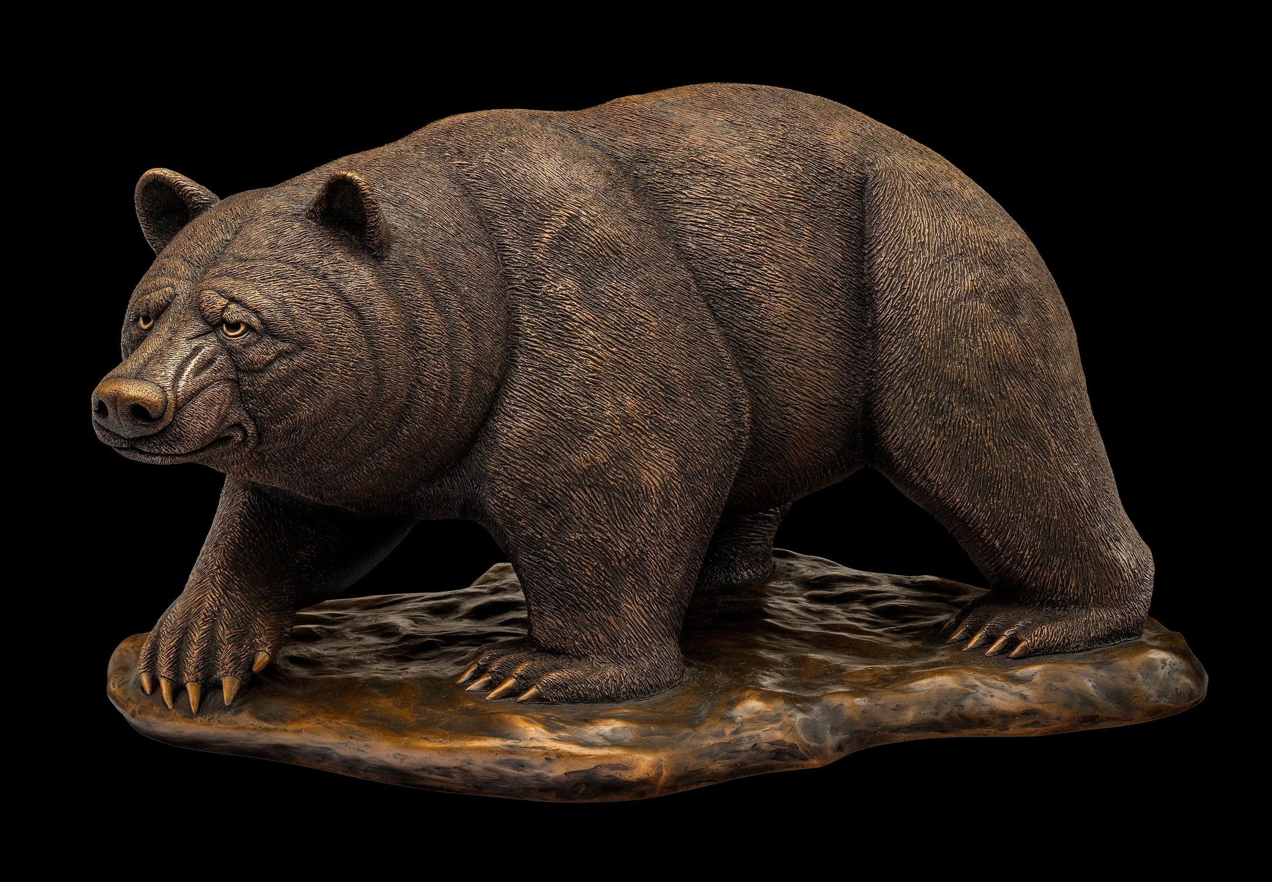 Dimensions for the bronze bear sculpture are 11” height; 13” width and 21” depth. The unique bronze bear sculpture will round out any art collection. Feel free to contact me if you’re interested in purchasing this true-to-life bronze bear sculpture.