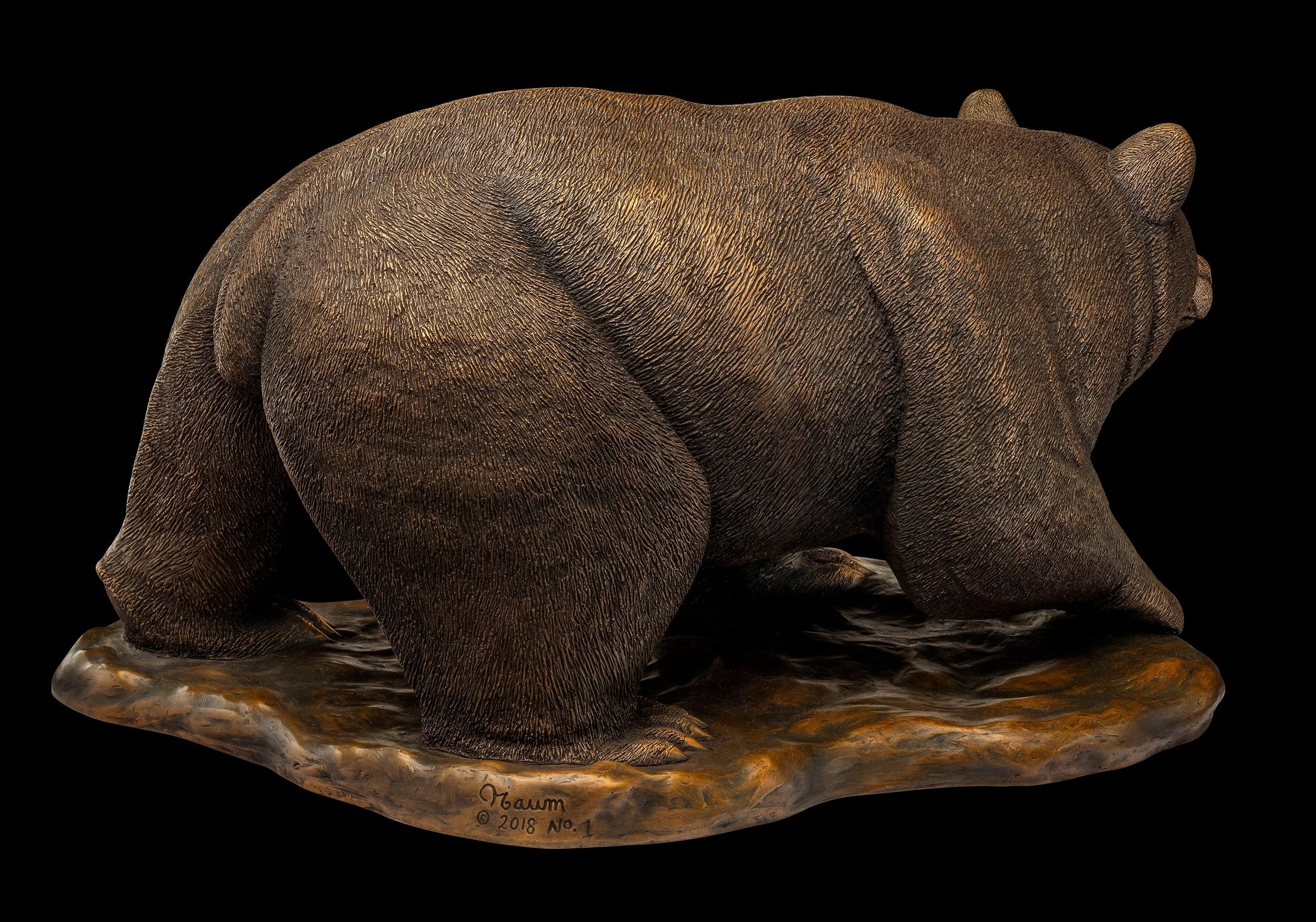 The level of detail in Mr. Nusbaum’s artwork is unmatched. He uses the Lost Wax Method to create museum-quality pieces made of 100 percent hot cast bronze. This bronze bear is perfect on a pedestal, table, desk, or a bookshelf to complete your art collection in your home or commercial property, including hotel or lodge lobbies.